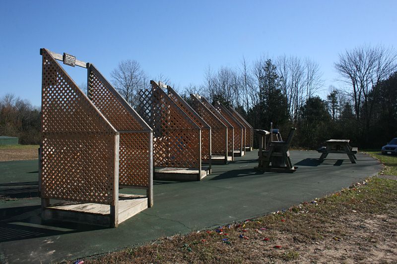There are usually somewhere between 6 and 8 traps that throw targets. Each throws a clay target in a unique presentation that simulates running rabbits to springing teal. Targets are also thrown in incoming, outgoing, quartering-away, quartering-in, and other angled patterns.